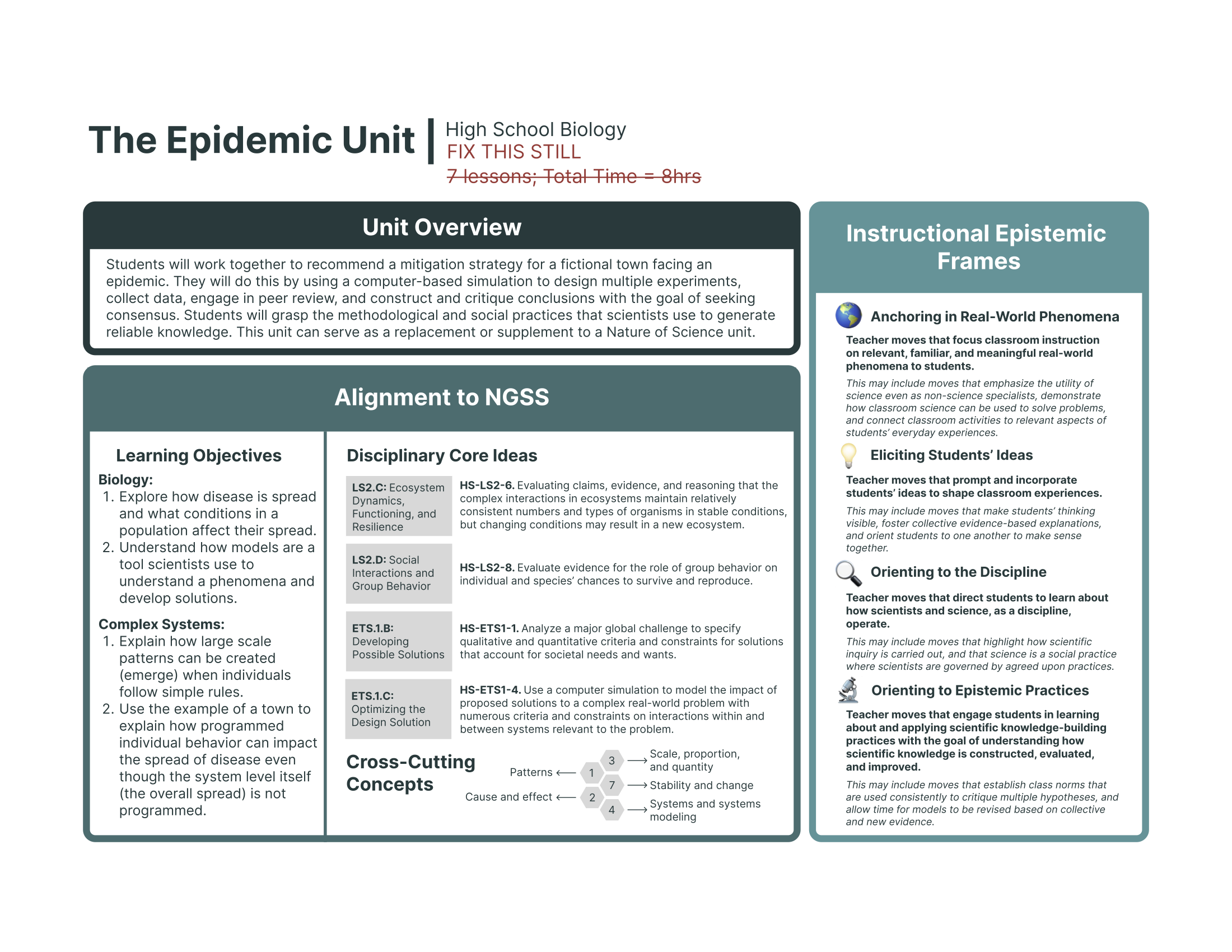 Below are three modified versions of the Epidemic Unit adapted by teachers and used in their classrooms.